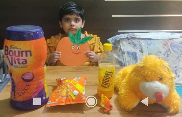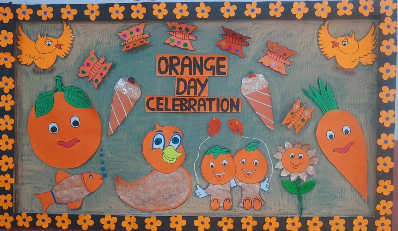 Orange is a dynamic colour that stimulates imagination and creativity .Toddlers in Orange radiated warmth and happiness , combining the physical energy and stimulation of red with the cheerfulness of yellow . The children of Nursery & K.G. , celebrated Orange day during their online class with a sole objective to acquaint the little ones with the concept of the secondary colour and objects related to it .The children were exposed to a series of creative activities to help them understand the positive impact of orange .The teacher's & children were both in a harmonious shades of orange colour .The activity helped in reinforcing the concept of orange colour.The children enjoyed a lot and it was indeed a pleasure to witness little ones dressed up in Orange bubbling with energy and fascination.
