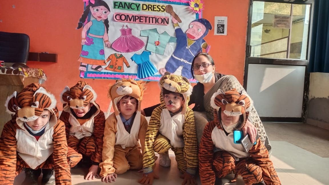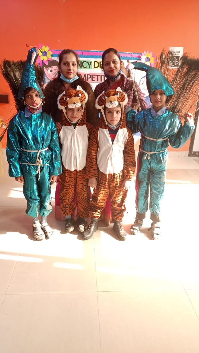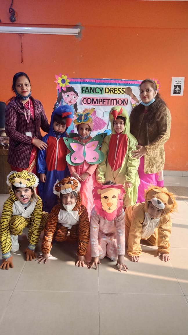 A Fancy dress competition not only blends learning with fun but also develops confidence in students by giving them an opportunity to speak infront of their own classmates and teachers .The children participated in fancy dress competition.Theme - Animals ,the great personality character of their choice etc .The children came dressed in appropriate costumes .As our little ones were looking adorable .They won our hearts with their exuberance & enthusiasm.