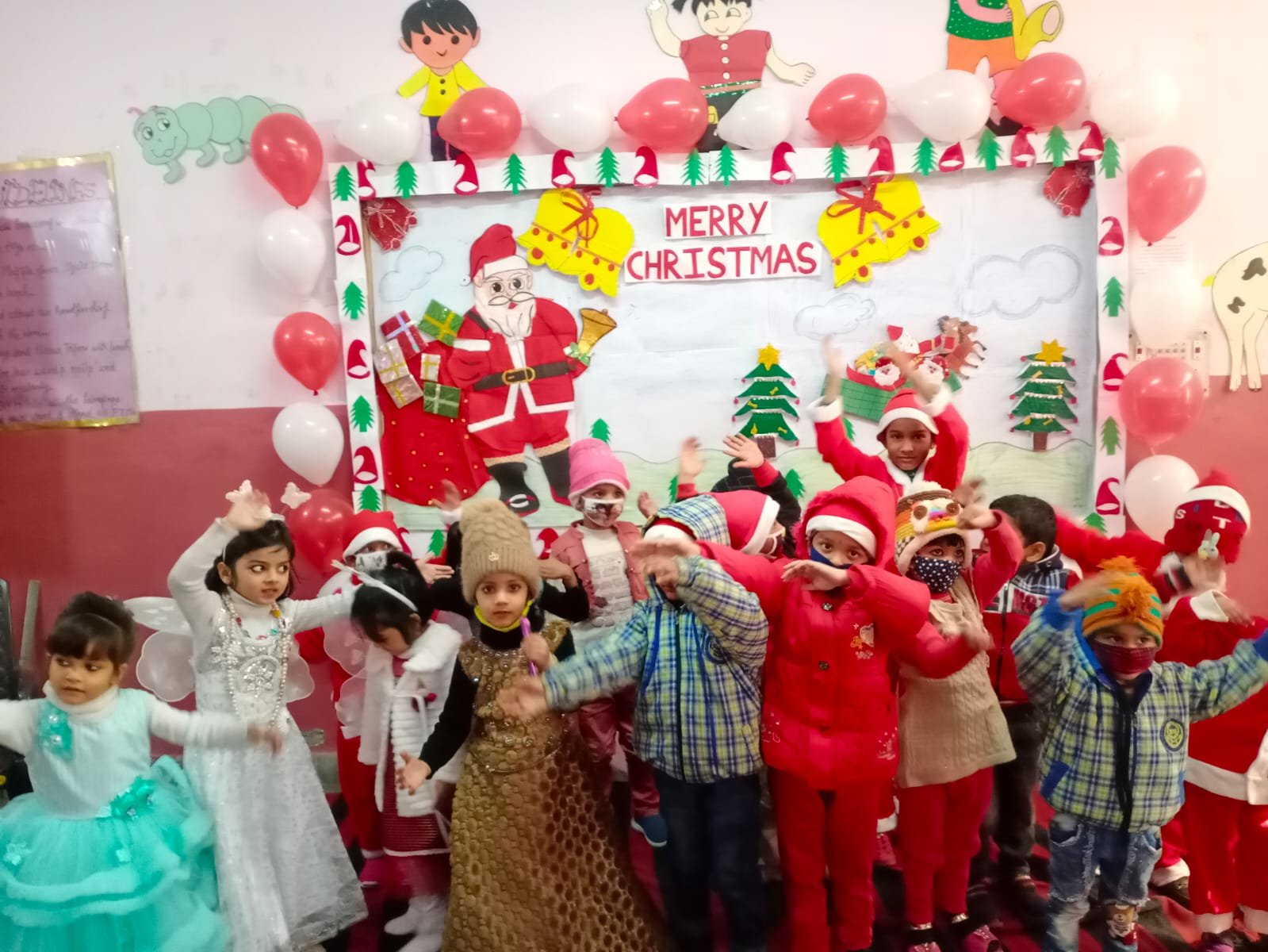 Tiny tots celebrated Christmas with great vitality .Tiny tots were arrayed in red & white ( Santa's Favourite Colours) & clicked images The boundless joy of celebrating the festival was evident on the faces of all children.