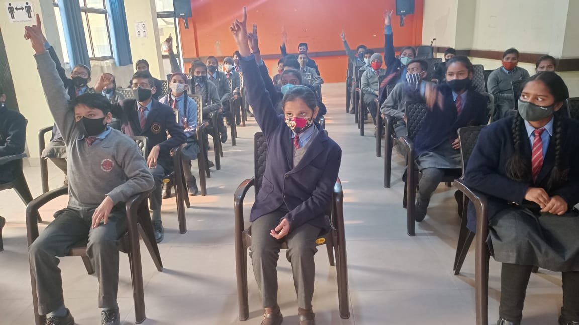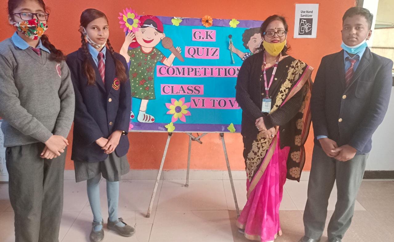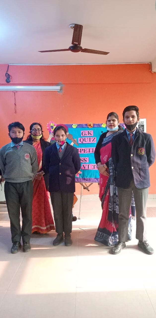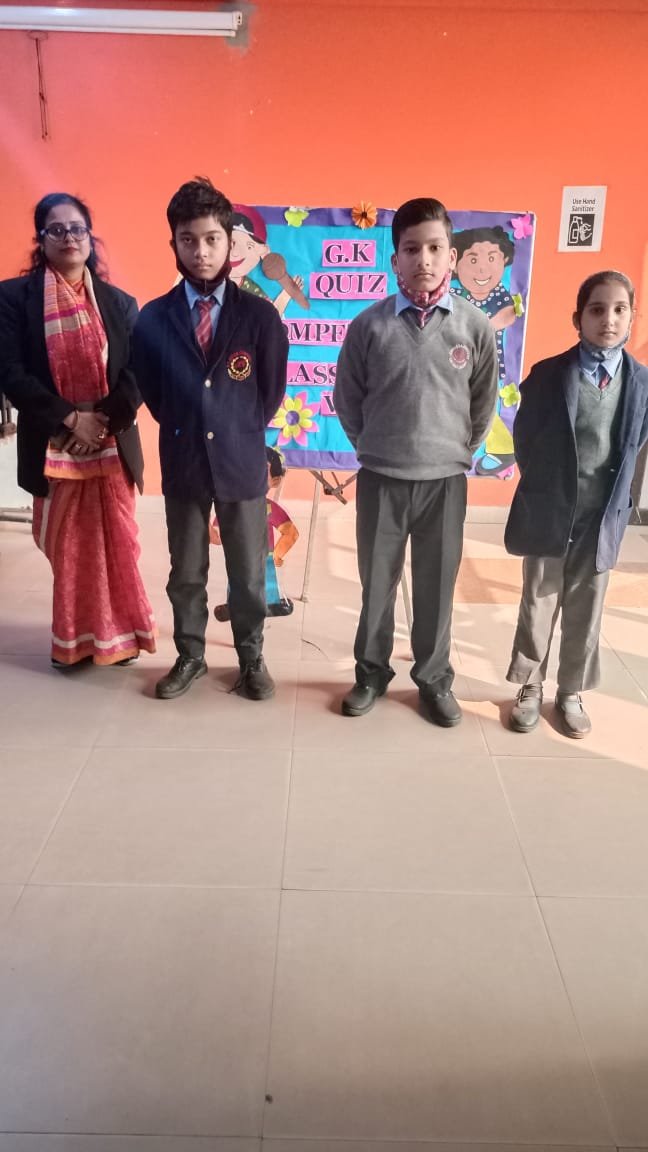An interclass G.k. quiz for classes VI to VIII was conducted innschool multipurpose hall.Various thought provoking questions based on general , science ,signs & symbols, sports, current affairs ,states & their capitals & Indian Sobriquets were asked from participants.