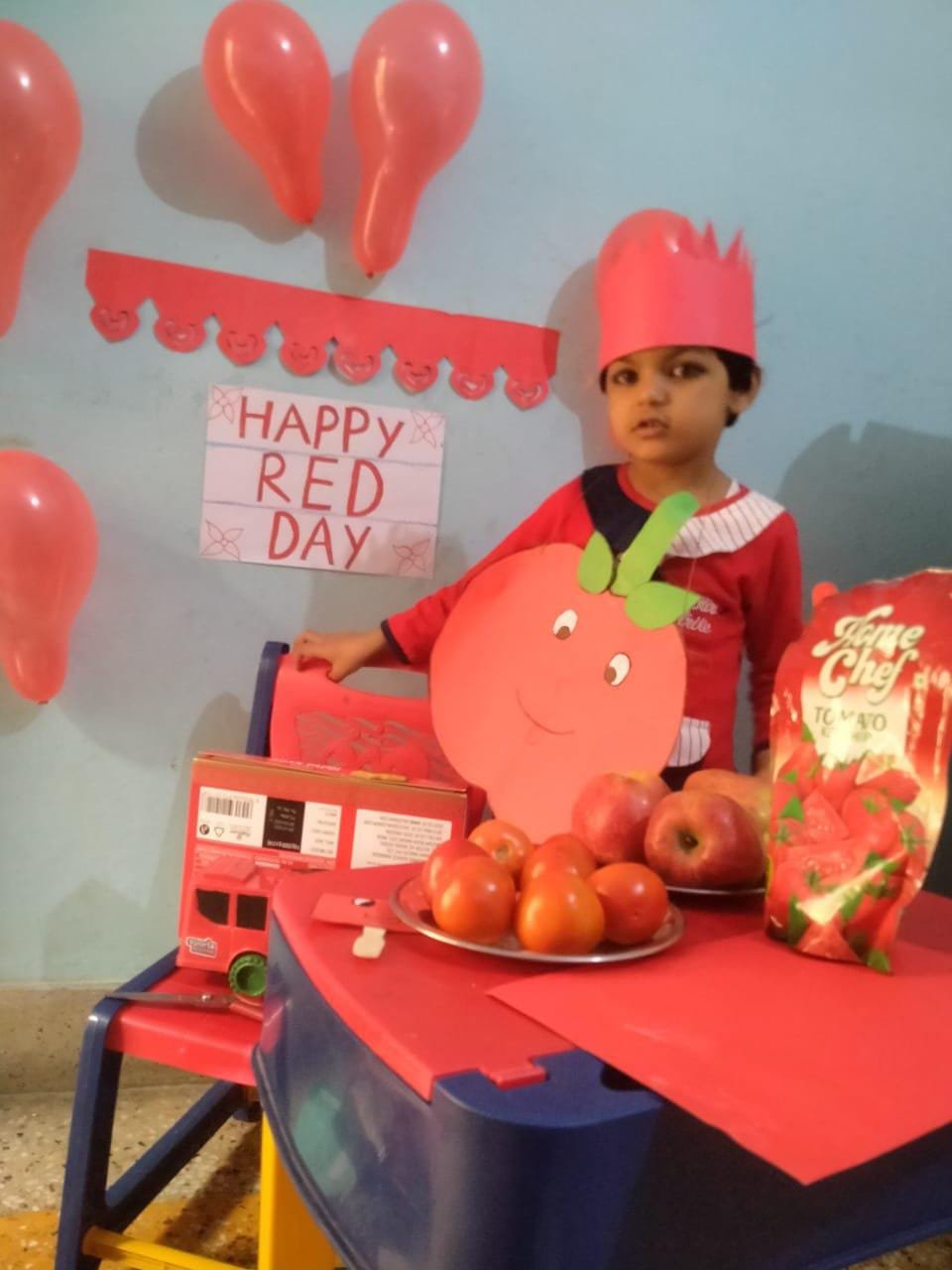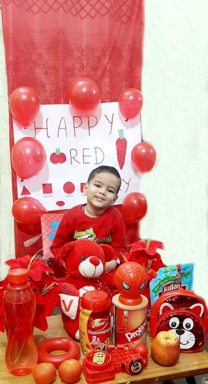 "The colours of love & smiles illuminates the air with energy ,vigour and exuberance .....". The shades of red made out tinytots feel bright ,lively and cheerful .The day started off with the colour red everywhere red dress,red teddy,red car ,red apples,red cherries, here a red ....... There a red ........... Red red everywhere .....Our little ones spent a spectacular red day .