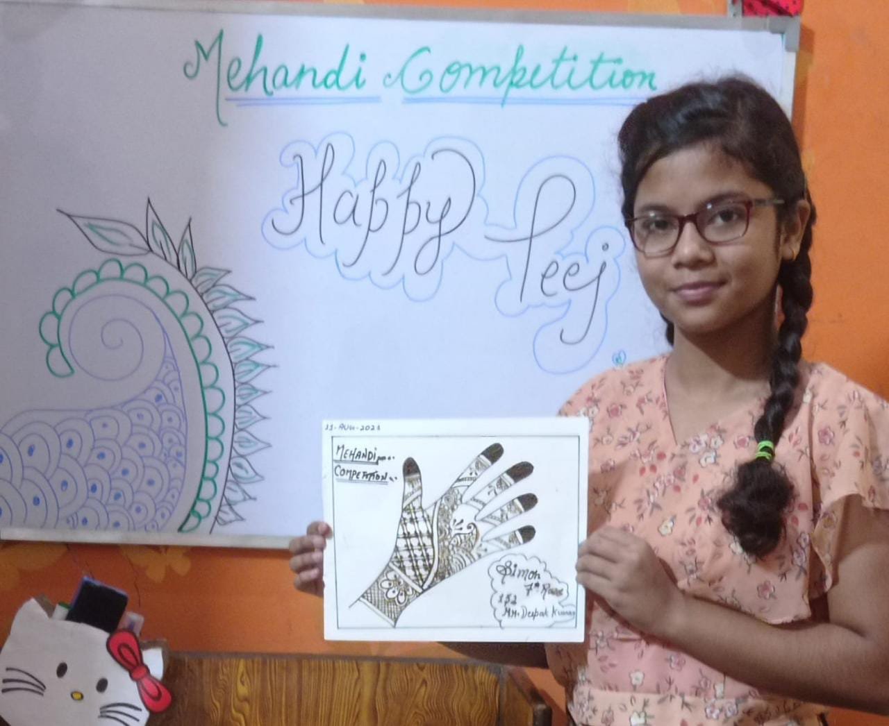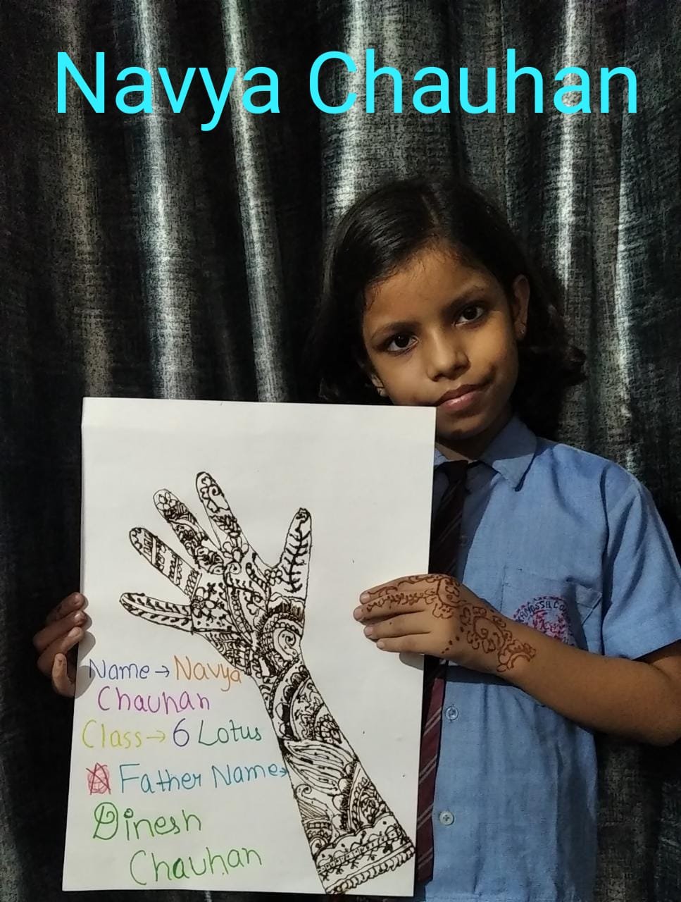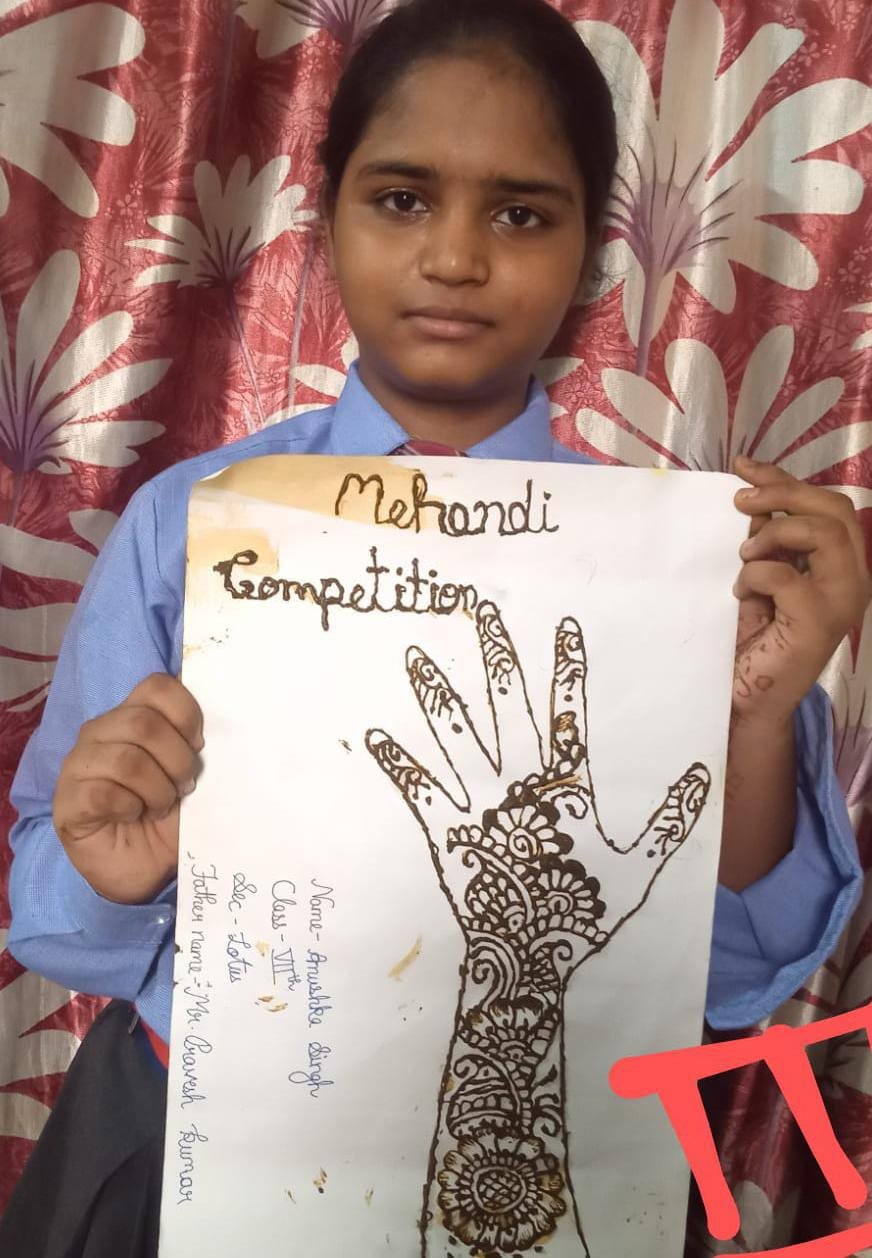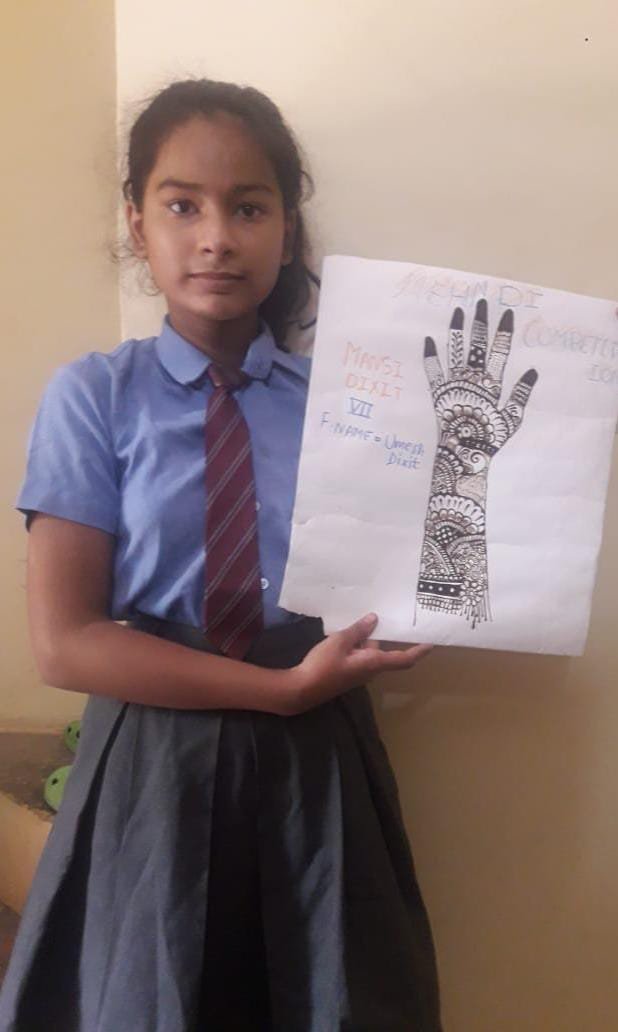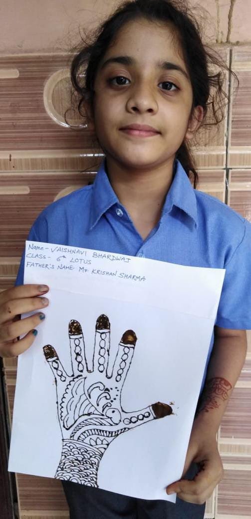Kanossa Convent School provided a virtual stage to the stars of standard VI to VIII by organising an online Mehandi Competition .children created beautiful designs in different thees .Mehandi reflects the rich Indian culture bringing together the knowledge of medicinal herbs with many lovely sentiments & beliefs.This competition was organised to seek & develop the traditional values among children.The aim of this competition was not merely to see the drawing skills of children but also the creativity of the children and their way of representation which will in turn improve the overall personality of the student.