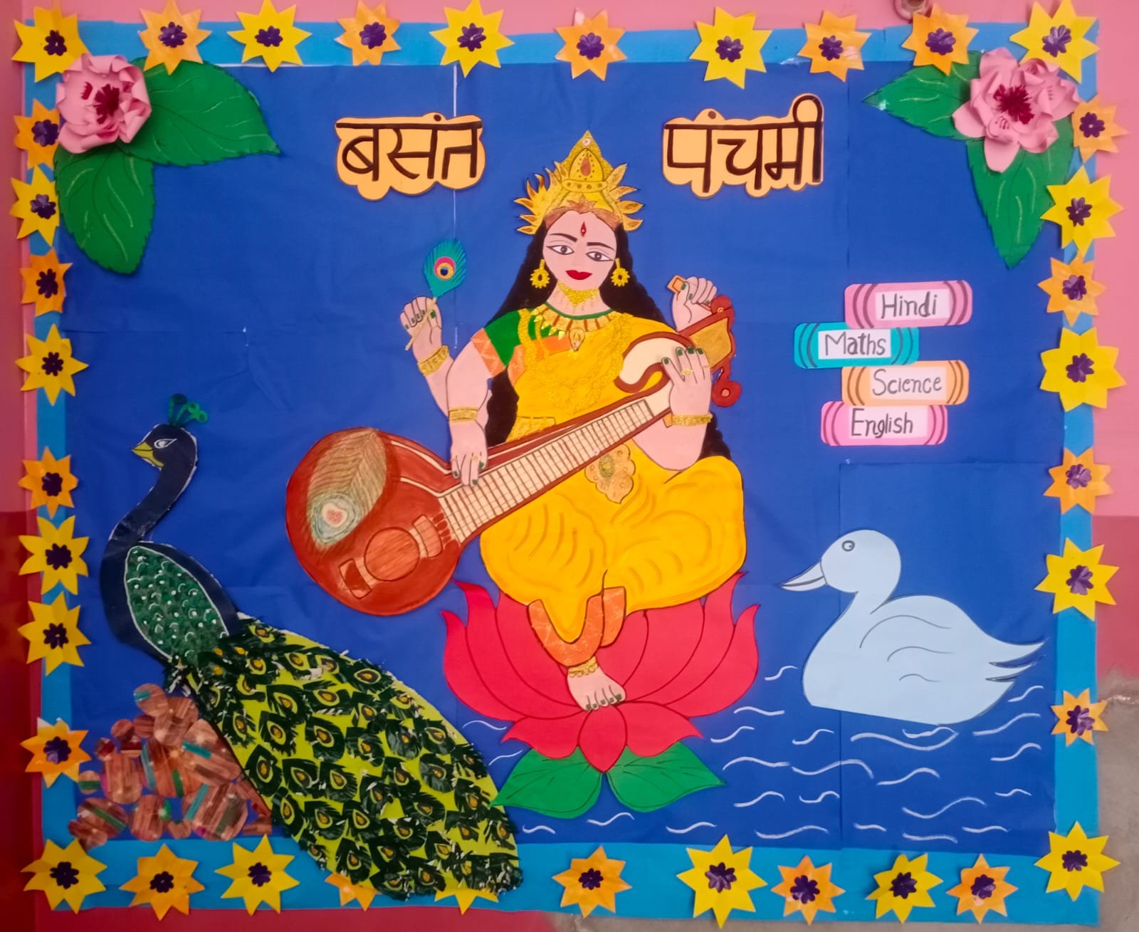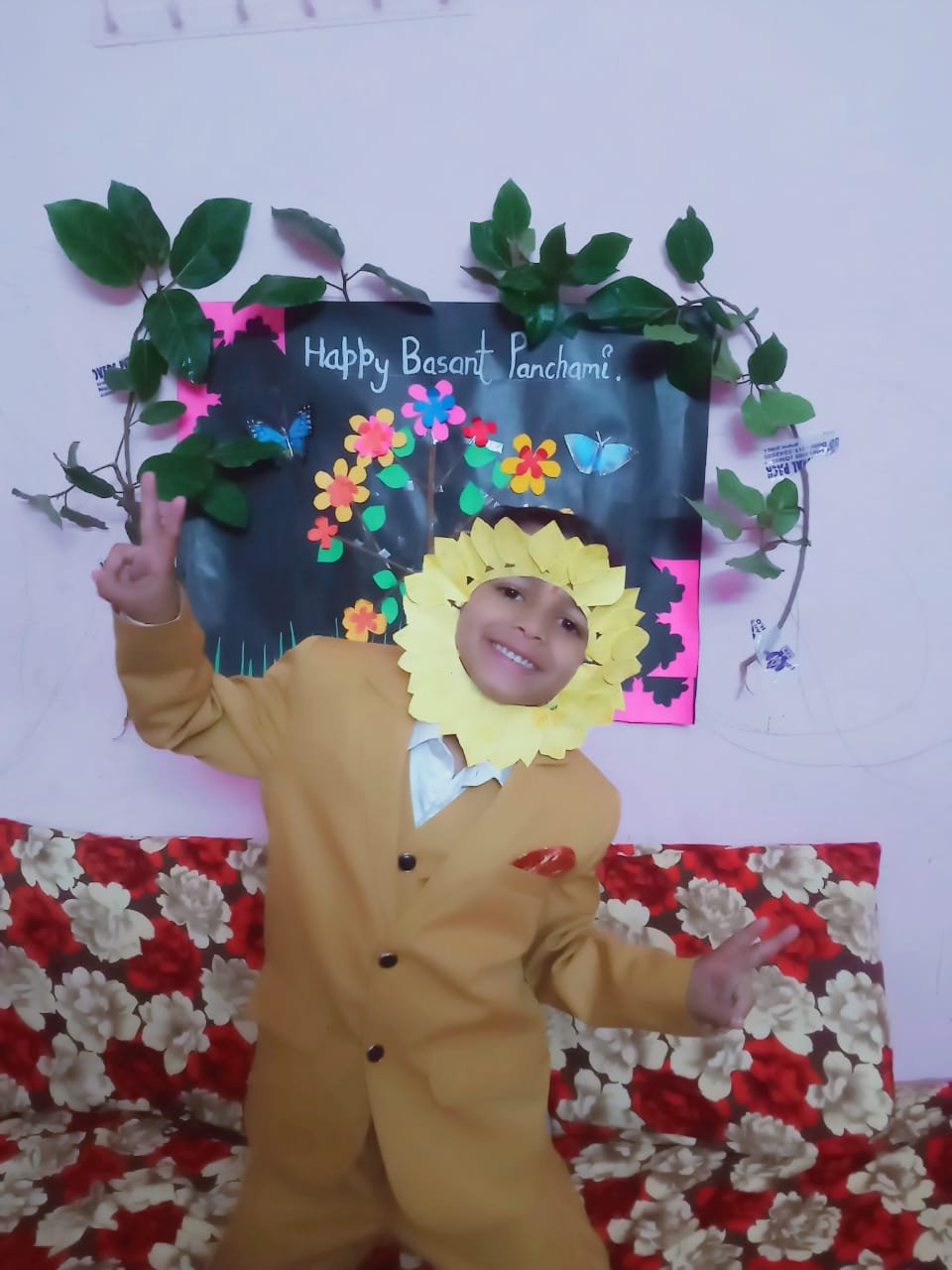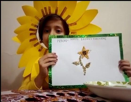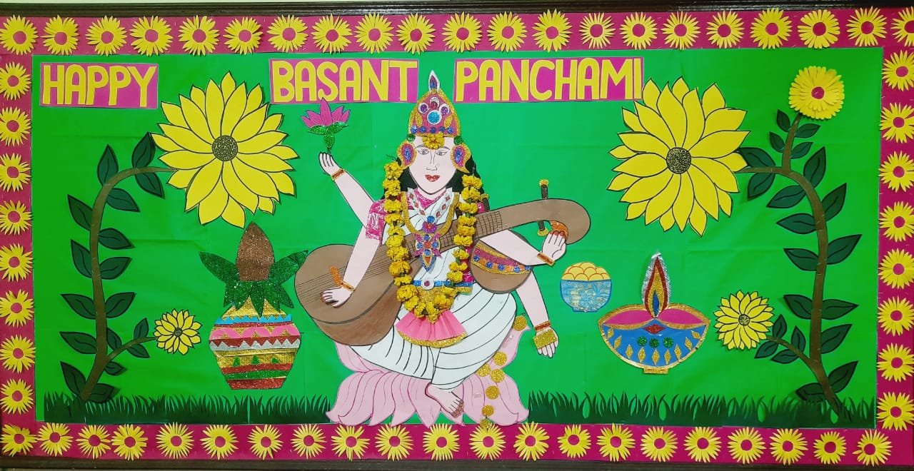 "Basant Panchami" is an occasion which marks the advent of Spring season & is also celebrated to worship Saraswati the goddess of knowledge & wisdom .This day was celebrated in our school with great fervour & enthusiasm . Yellow colour- representative of spiritual knowledge,is given importance on Basant Panchami.The spring of joy took over when students displayed their talent through various activities like paper sunflower ,pulses flower etc