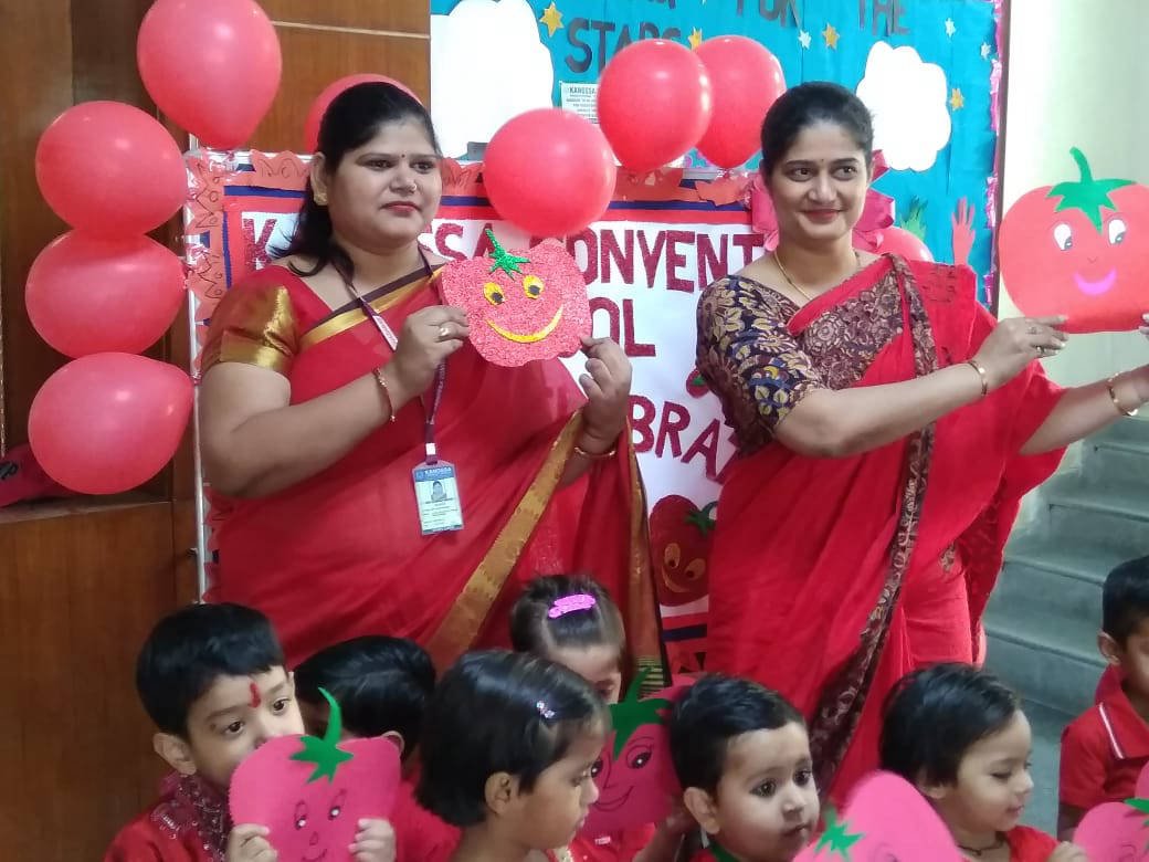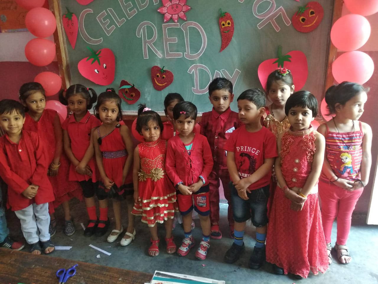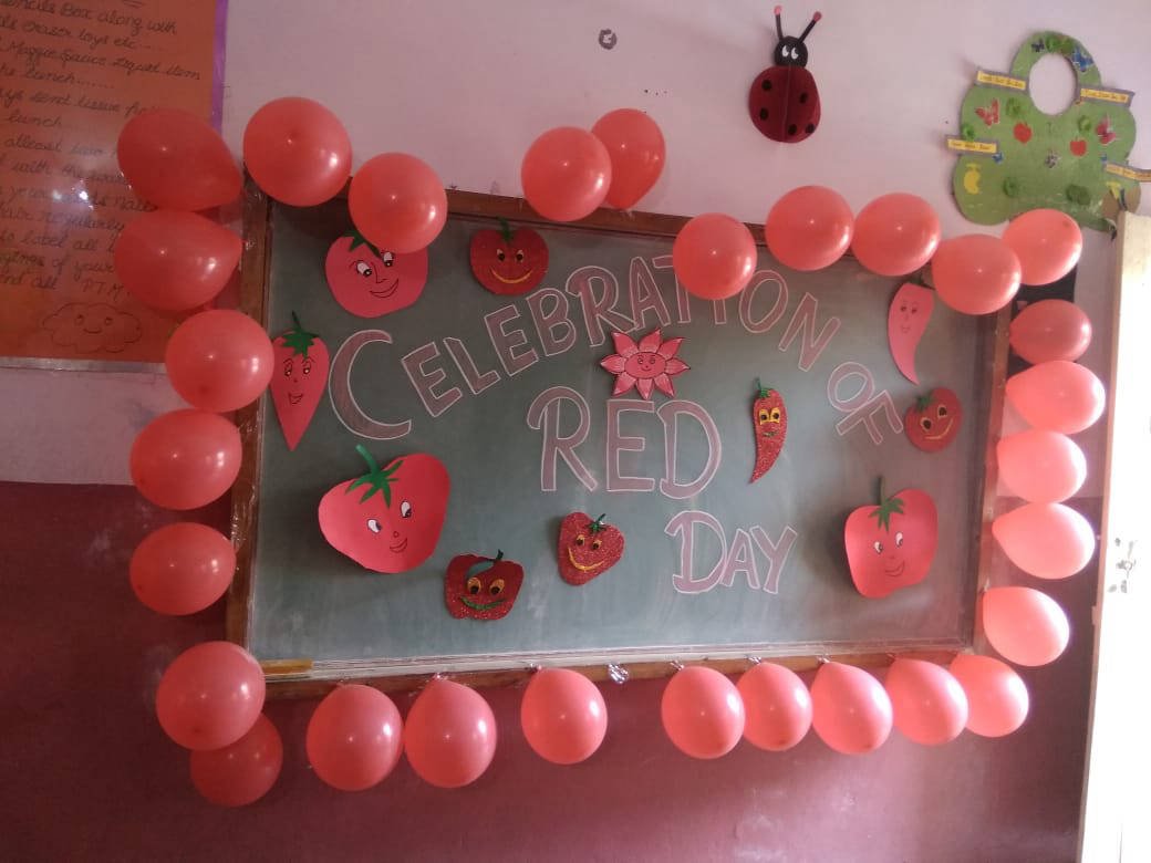 To induce color learning in the kids, the teachers observe different color days. The kids come to school dressed in the colors allocated to them and bring objects of the same color.