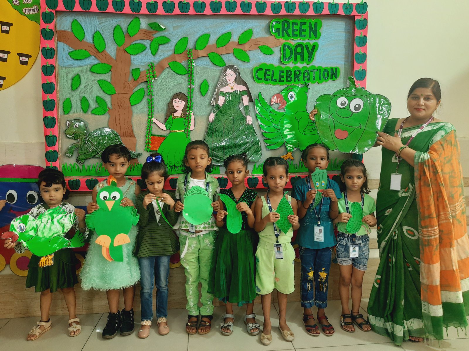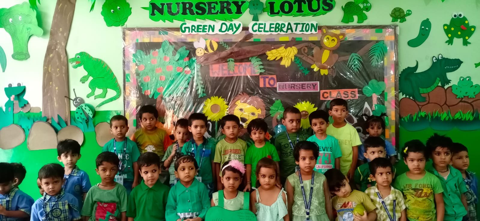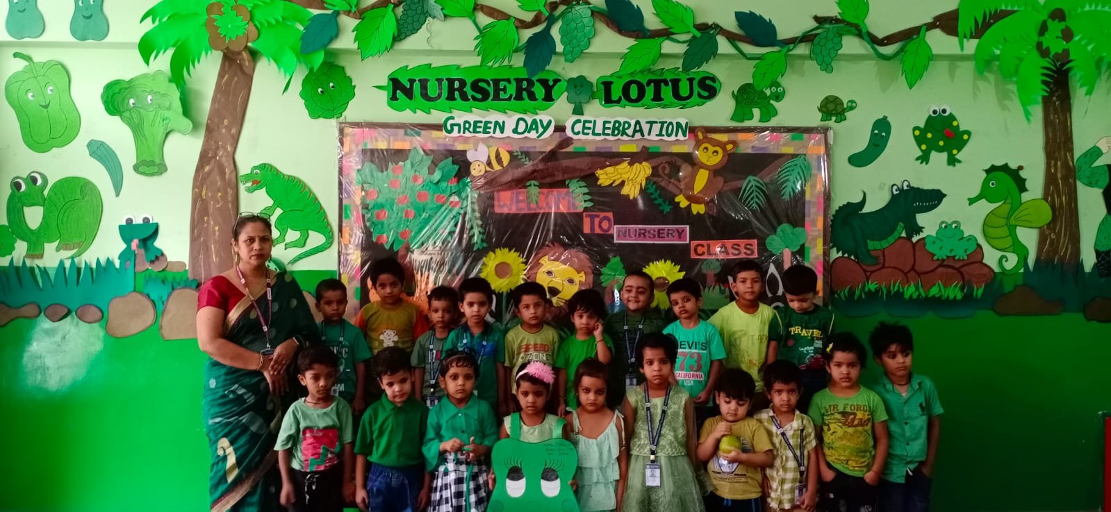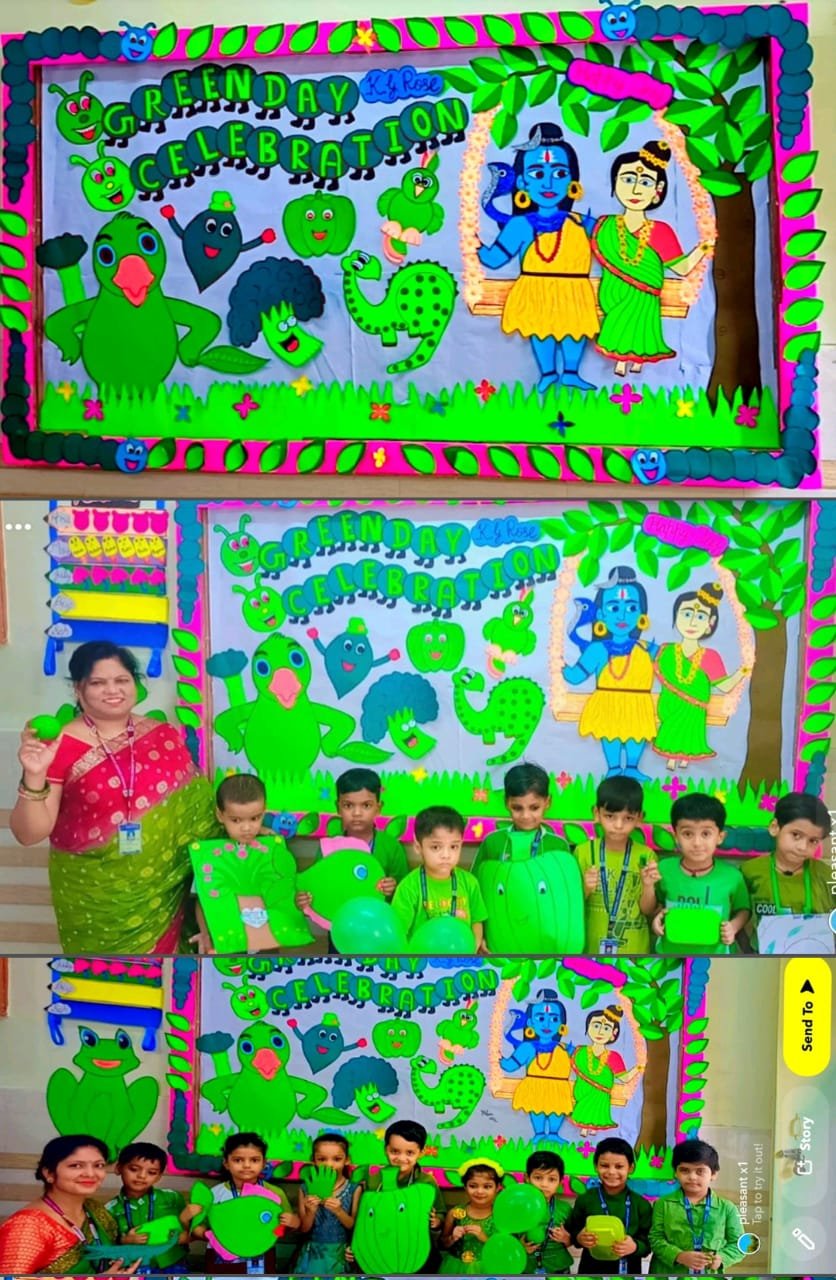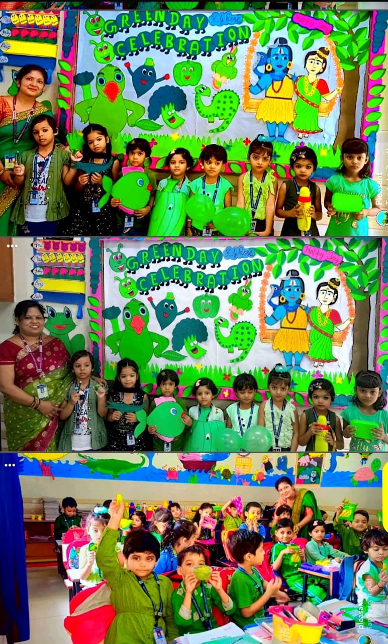 All the students and teachers came dressed up in the different shades of green and the classes became vibrant with the beautiful green backgrounds.These activities helped children to develop fine motor coordination, focus, encourage self-expression and stimulate creativity. Children participated well and learnt green colour with keen interest.