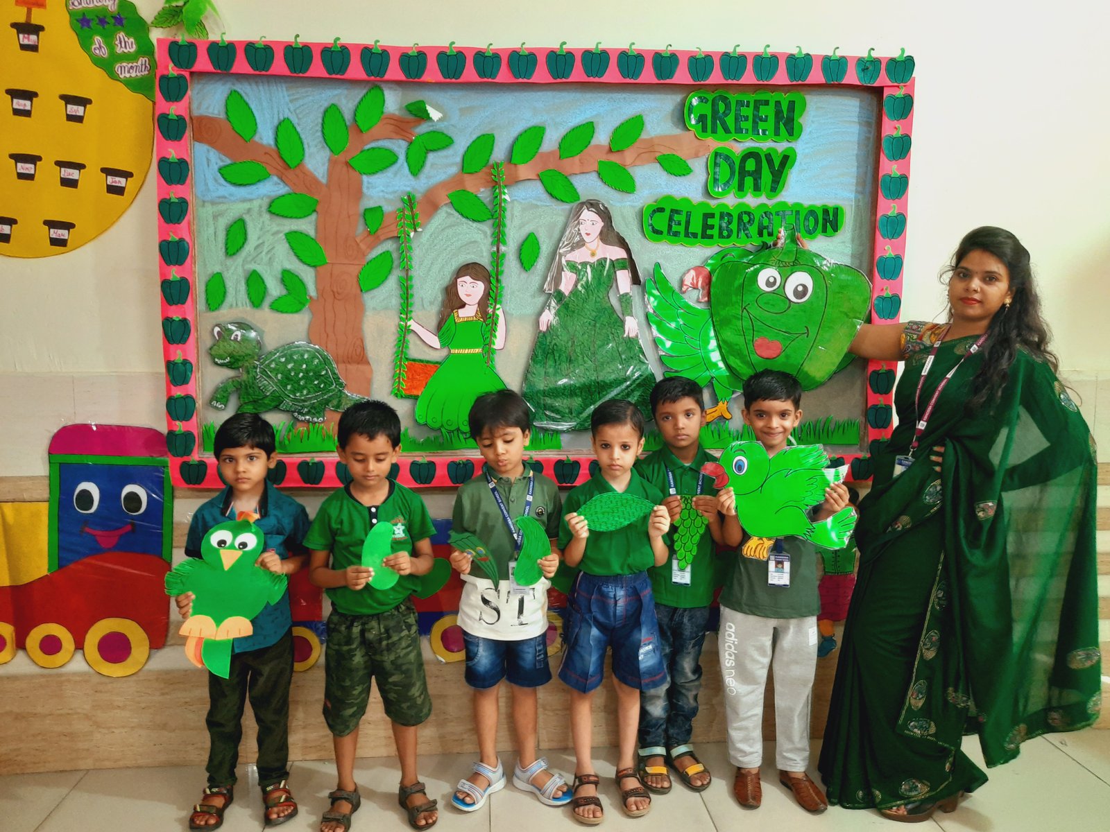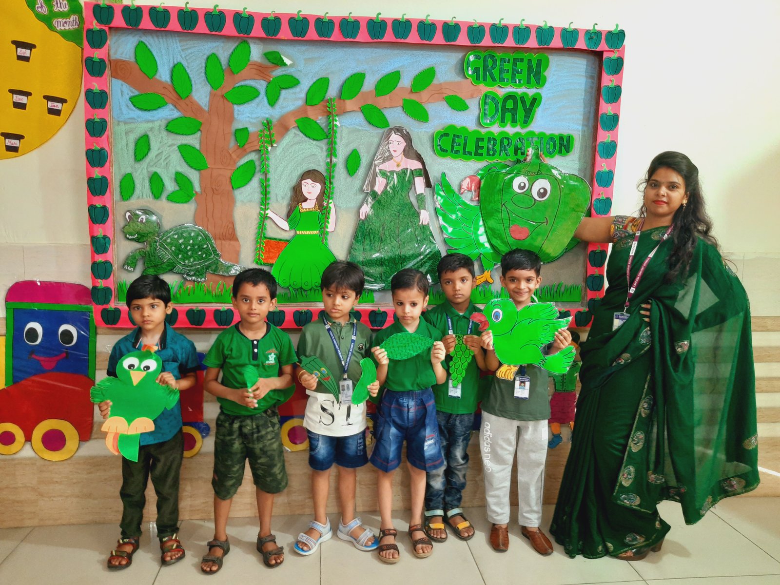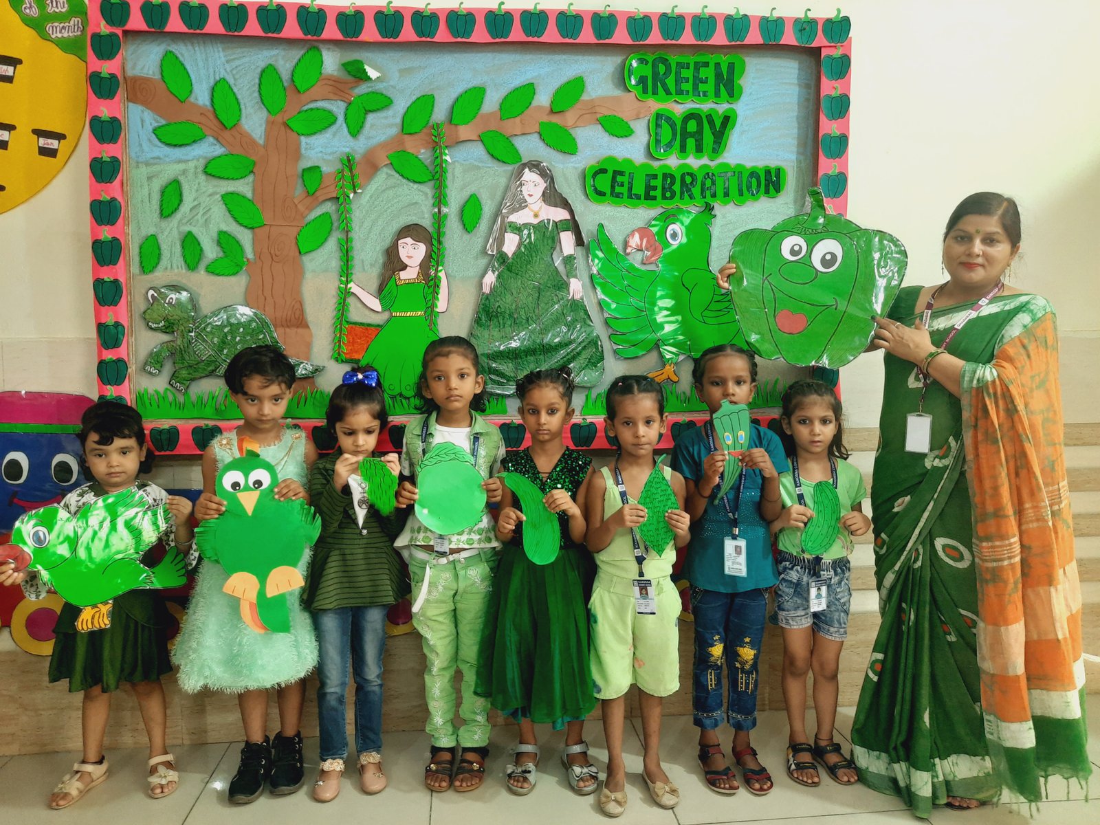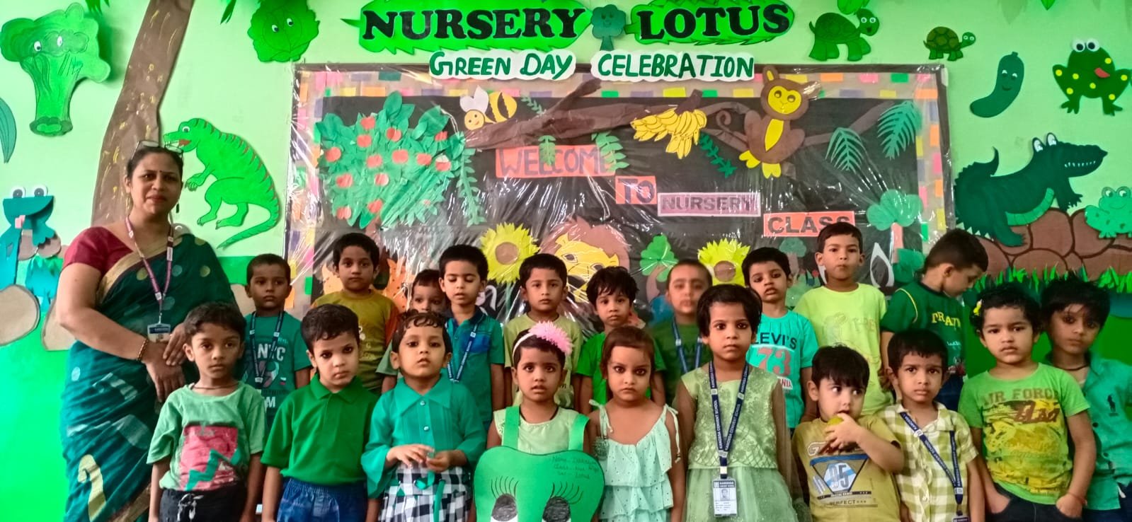 All the students and teachers came dressed up in the different shades of green and the classes became vibrant with the beautiful green backgrounds.These activities helped children to develop fine motor coordination, focus, encourage self-expression and stimulate creativity. Children participated well and learnt green colour with keen interest.