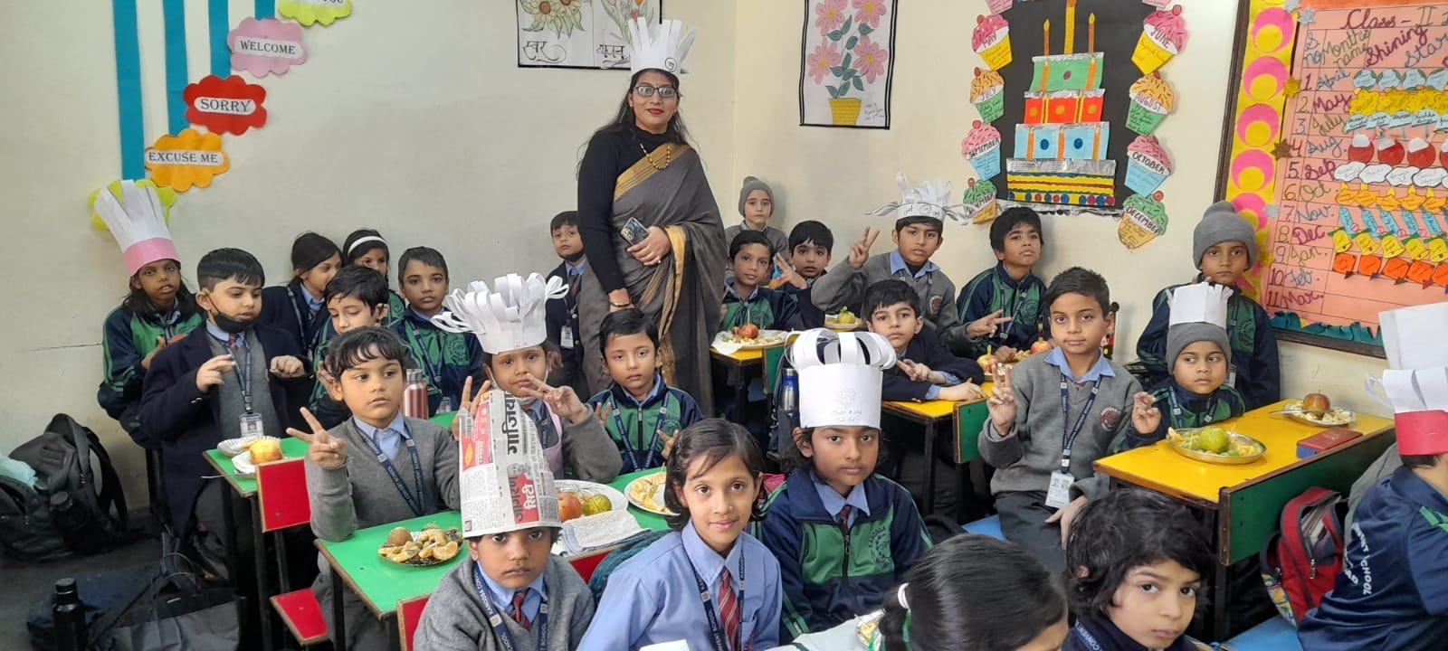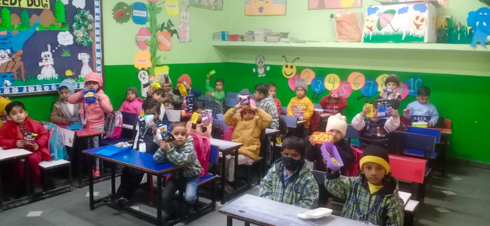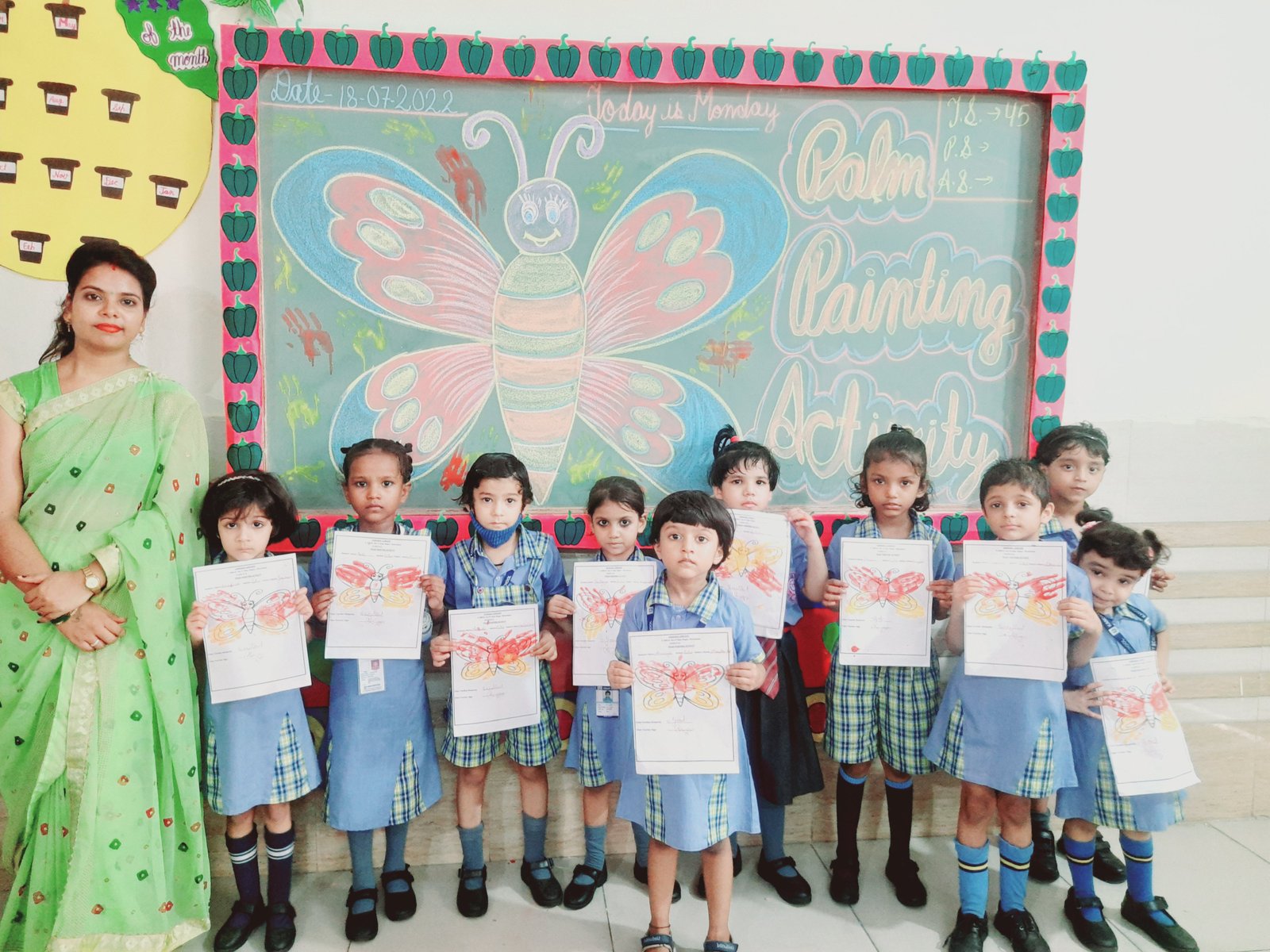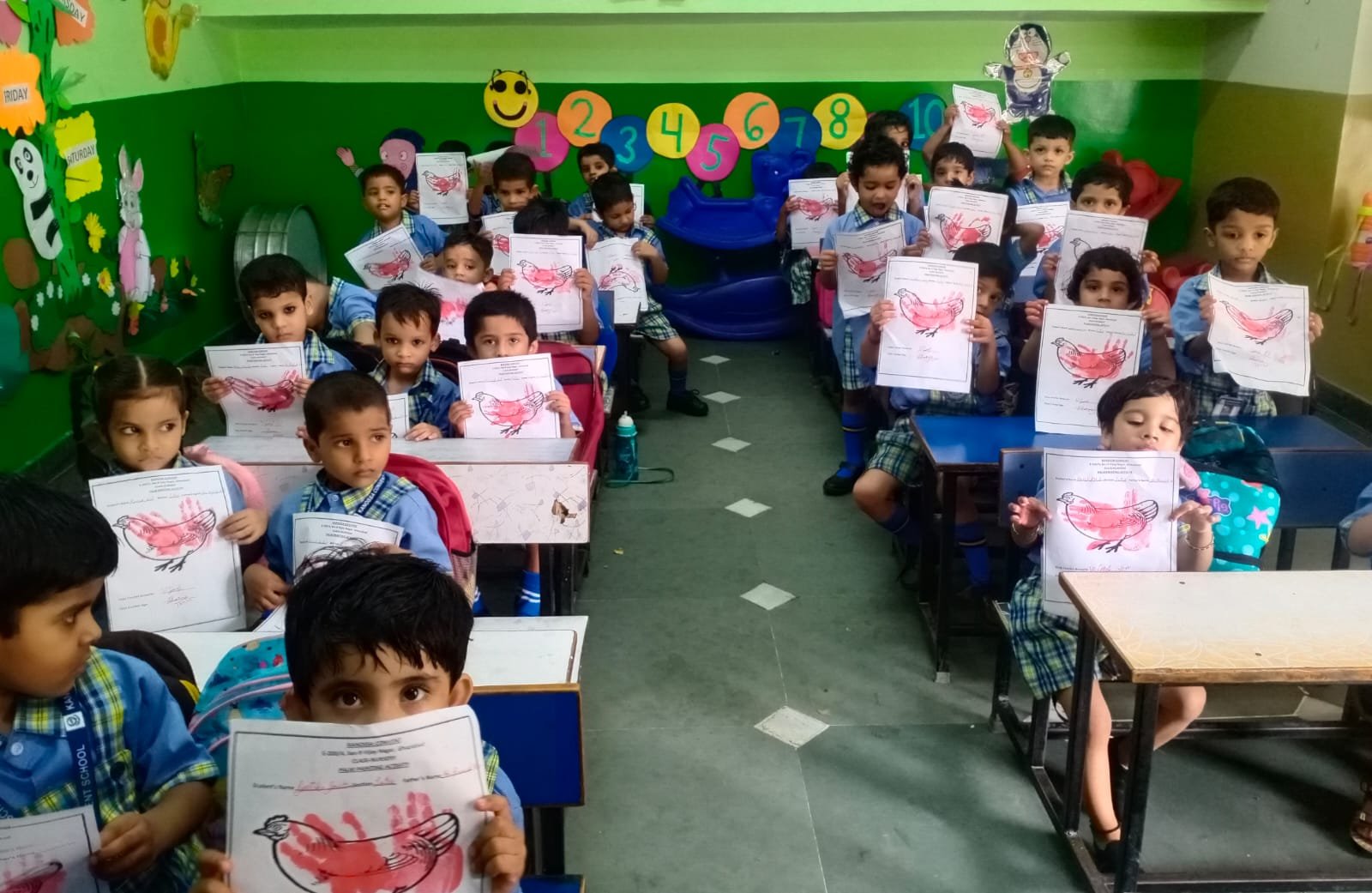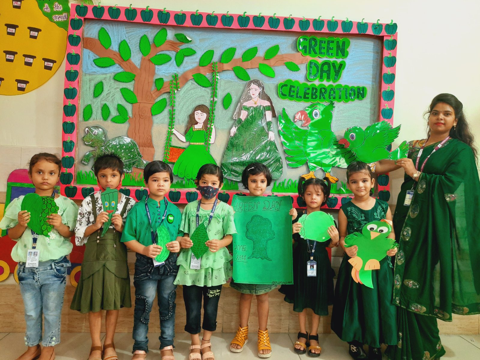 All the students and teachers came dressed up in the different shades of green and the classes became vibrant with the beautiful green backgrounds.These activities helped children to develop fine motor coordination, focus, encourage self-expression and stimulate creativity. Children participated well and learnt green colour with keen interest.