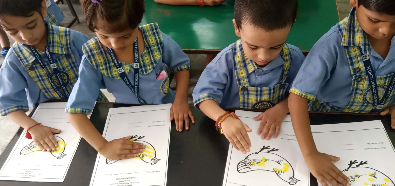 They're building finger, wrist and hand strength, while improving their hand-eye coordination. Fine motor skills are developing rapidly in young children aged 0 to 6, and this is the prime time to encourage them with suitable painting activities.Therefore palm painting activity is organised at KCS for our little toddlers.