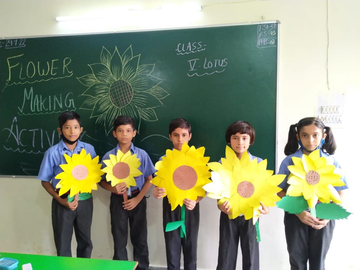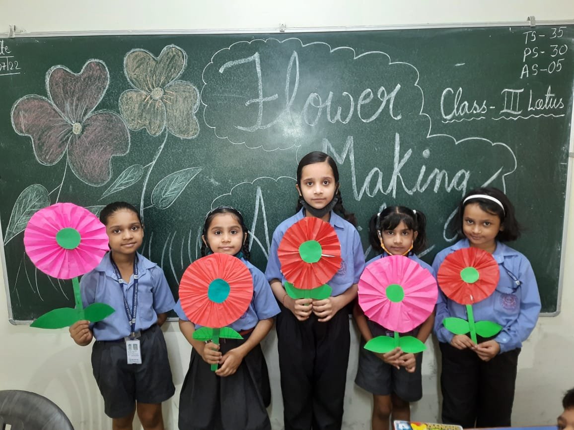 With an aim to break the monotony and enhance creativity of children, a ‘Flower Making’ ACTIVITY was conducted for the students of class 3 to 5. As soon as the little artists started working with nimble fingers, the classrooms were bathed in amazing hues of different flowers. For some children, a cut here and a fold there, a masterpiece was ready soon while some worked painstakingly to create their pieces of art. The classrooms looked like little gardens with beautiful roses, lilies, dahlias, buttercups, daisies and so many more. The activity was like a breath of fresh air for the students.