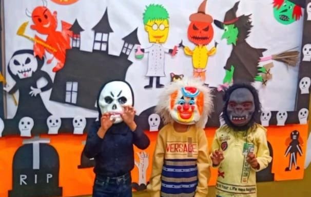 Halloween’s Day was celebrated with a fun filled exciting fancy dress parade in the Kindergarten Department. There were very happy Superheroes, Fairies, Witches, Goblins and other interesting characters walking around. Excited faces were seen everywhere as children posed for photographs to the equally thrilled parents.