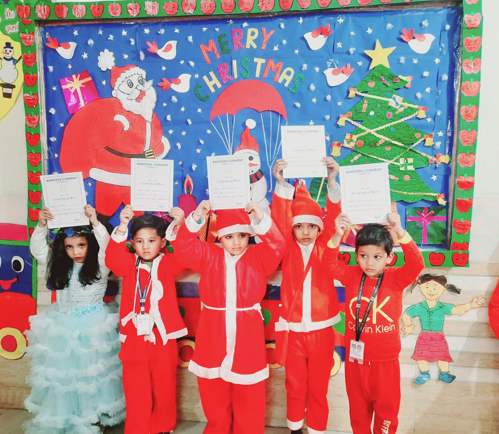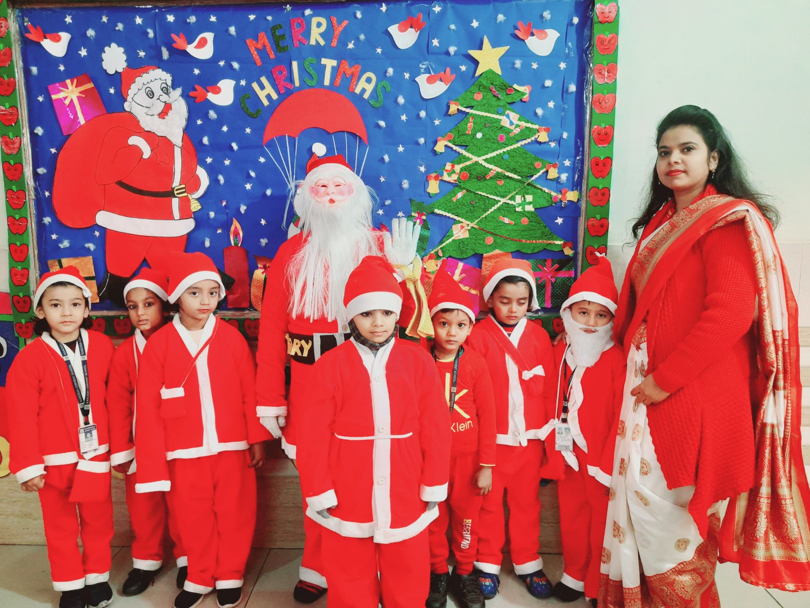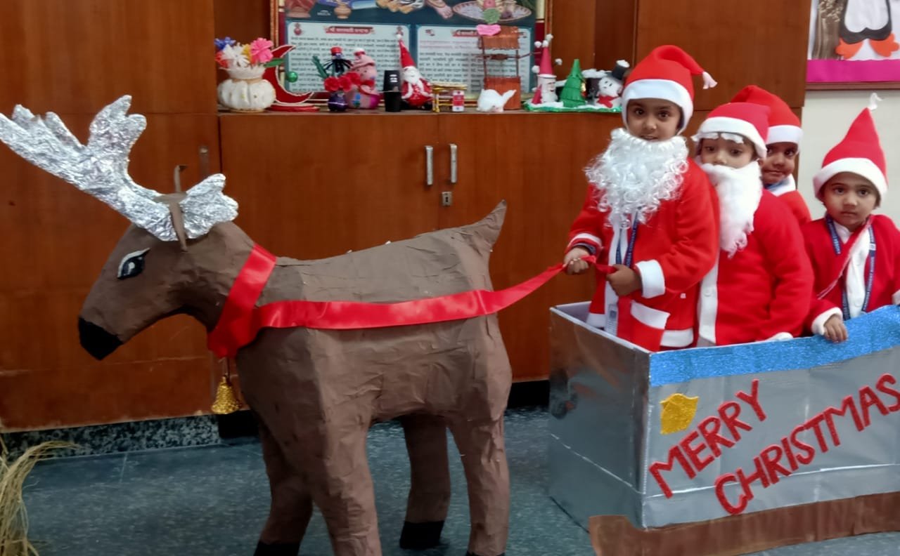 Tiny tots celebrated Christmas with great vitality .Tiny tots were arrayed in red & white ( Santa's Favourite Colours) & clicked images The boundless joy of celebrating the festival was evident on the faces of all children.